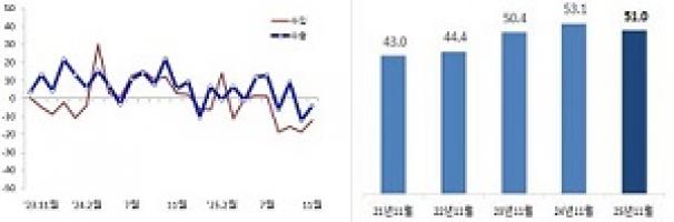 수출입 특이사항으로는 11월 수출은 전년 동월 대비 4.0% 감소한 51.0억 달러 기록했다.